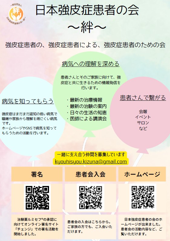 日本強皮症患者の会~絆~のポスターのダウンロードが出来るようになりました。
